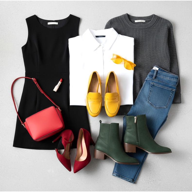 En esta guía, veremos tanto combinaciones clásicas y seguras como combinaciones más atrevidas para aquellos que quieran experimentar. Aprenderás qué colores de zapatos son los más universales, cómo combinar zapatos con ropa estampada y qué errores evitar.