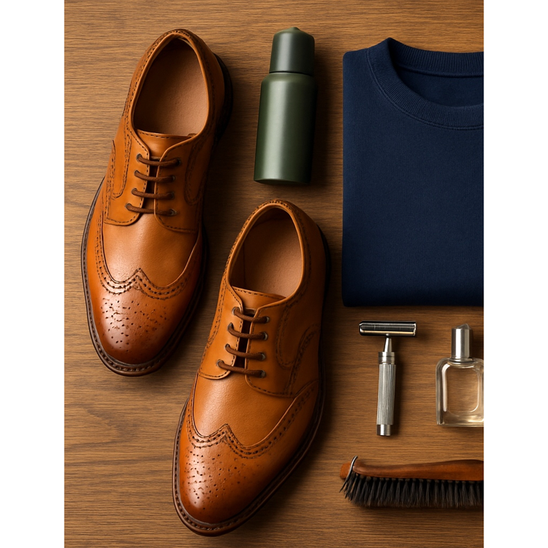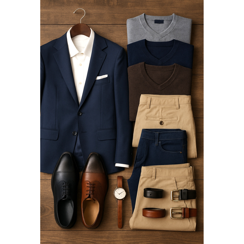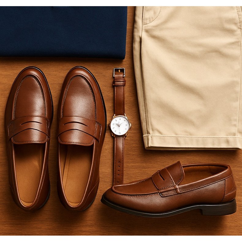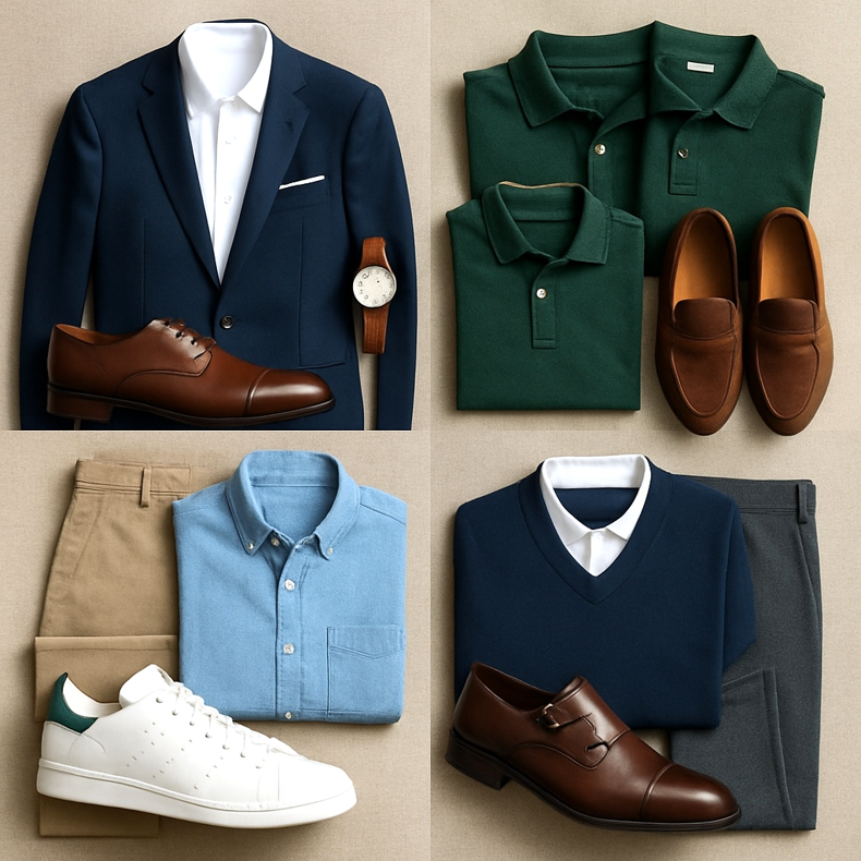 Jeans oscuros + polo/suéter + mocasines marrones o botas Chelsea.
