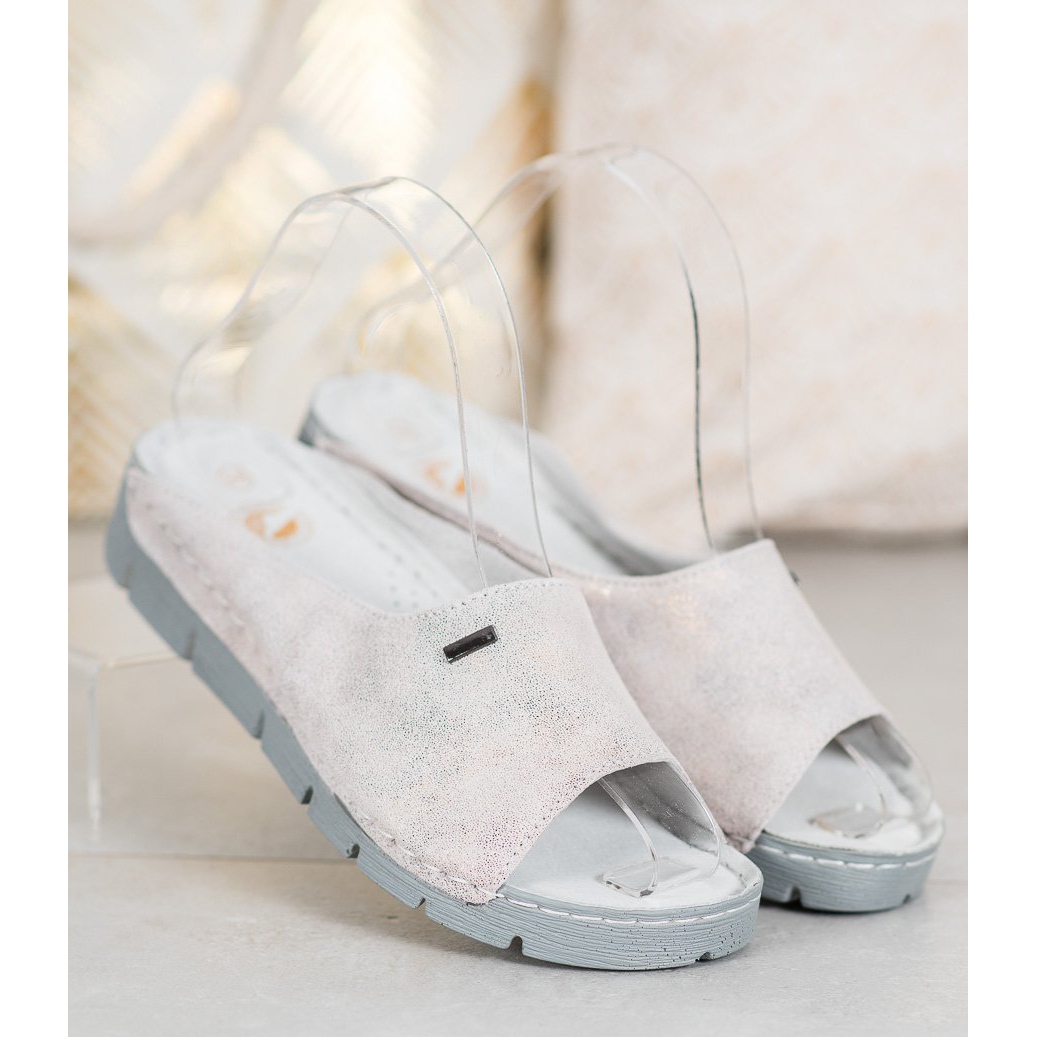 Goodin Goodin Cómodas pantuflas de cuero gris