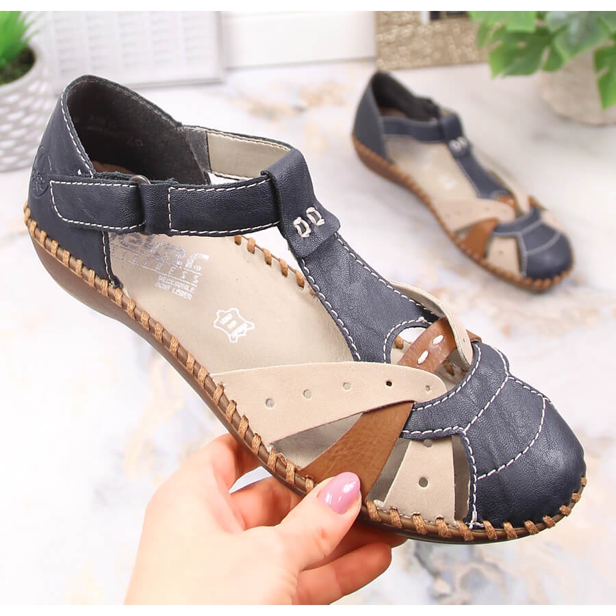Detalles: Cómodas sandalias planas de mujer con velcro Rieker M1655-14 beige