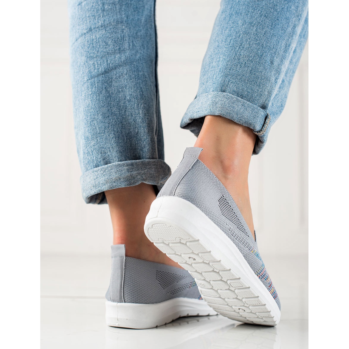 Descubra la comodidad y el estilo con las cómodas zapatillas sin cordones W. Potocki en un elegante color gris, que encajan perfectamente en un look informal y cotidiano. Estas zapatillas deportivas para mujer, diseñadas pensando en la mujer activa, son una elección perfecta para la primavera y el verano.