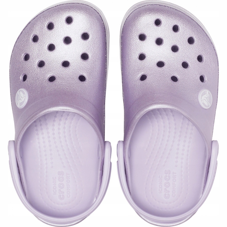 CROCS coloridos, ligeros y cómodos para niñas, ideales para el uso diario, a la playa, al jardín de infantes o en el patio. El Croc Band Glitter Clog Kids combina el diseño clásico de Crocs con un sutil acabado de brillo que agregará encanto a cualquier estilización.