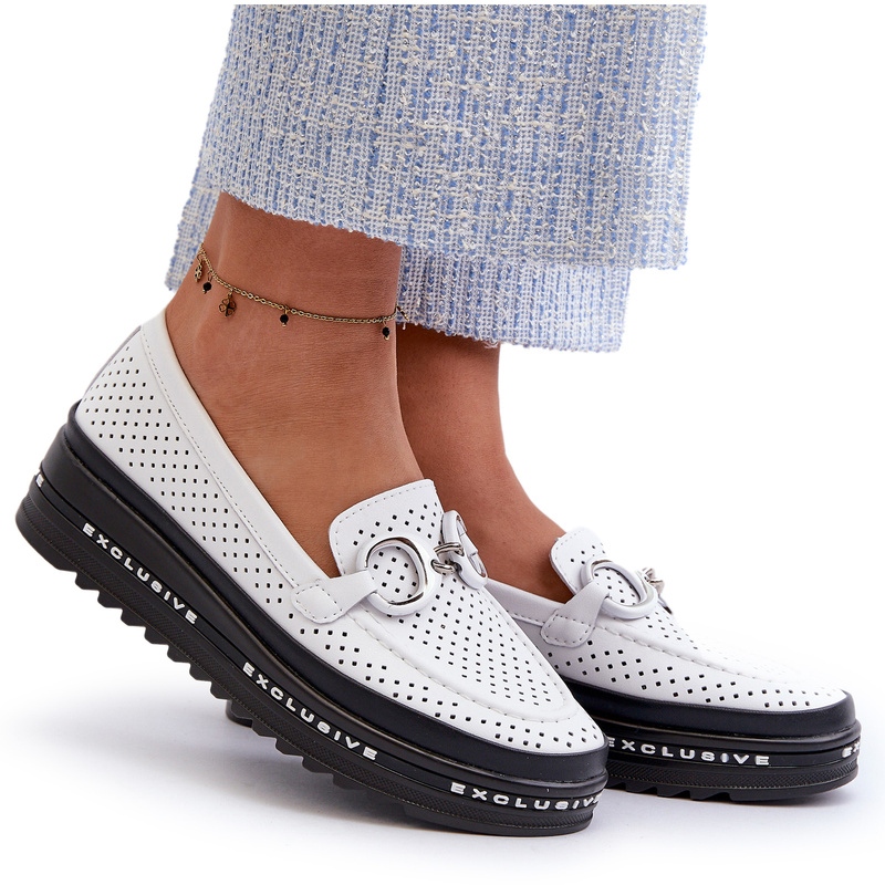 El mocasines para mujeres de cuero en la plataforma S. Barski LR750 en White es una propuesta para mujeres que desean combinar la comodidad con elegancia. Hecho de cuero natural de alta calidad, estos mocasines deleitan un patrón de trabajo abierto que les da ligereza y originalidad.