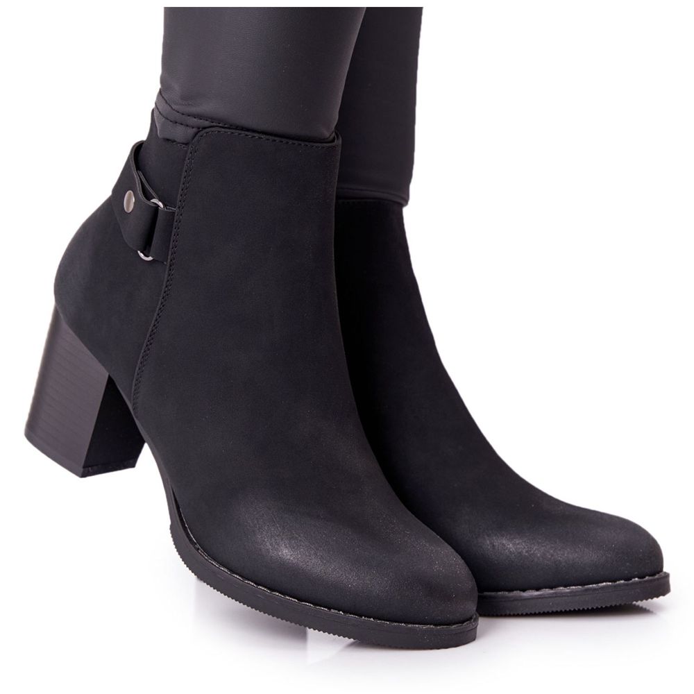 El interior de las botas está forrado con una manta para zapatos suave y agradable al tacto, que garantiza calidez y comodidad de uso. Gracias a la numeración estándar, elegir la talla correcta es fácil y la tabla de tallas proporciona seguridad adicional. La altura de la caña es de 10 cm y el tacón de 7 cm, lo que los hace no sólo elegantes, sino también estables.