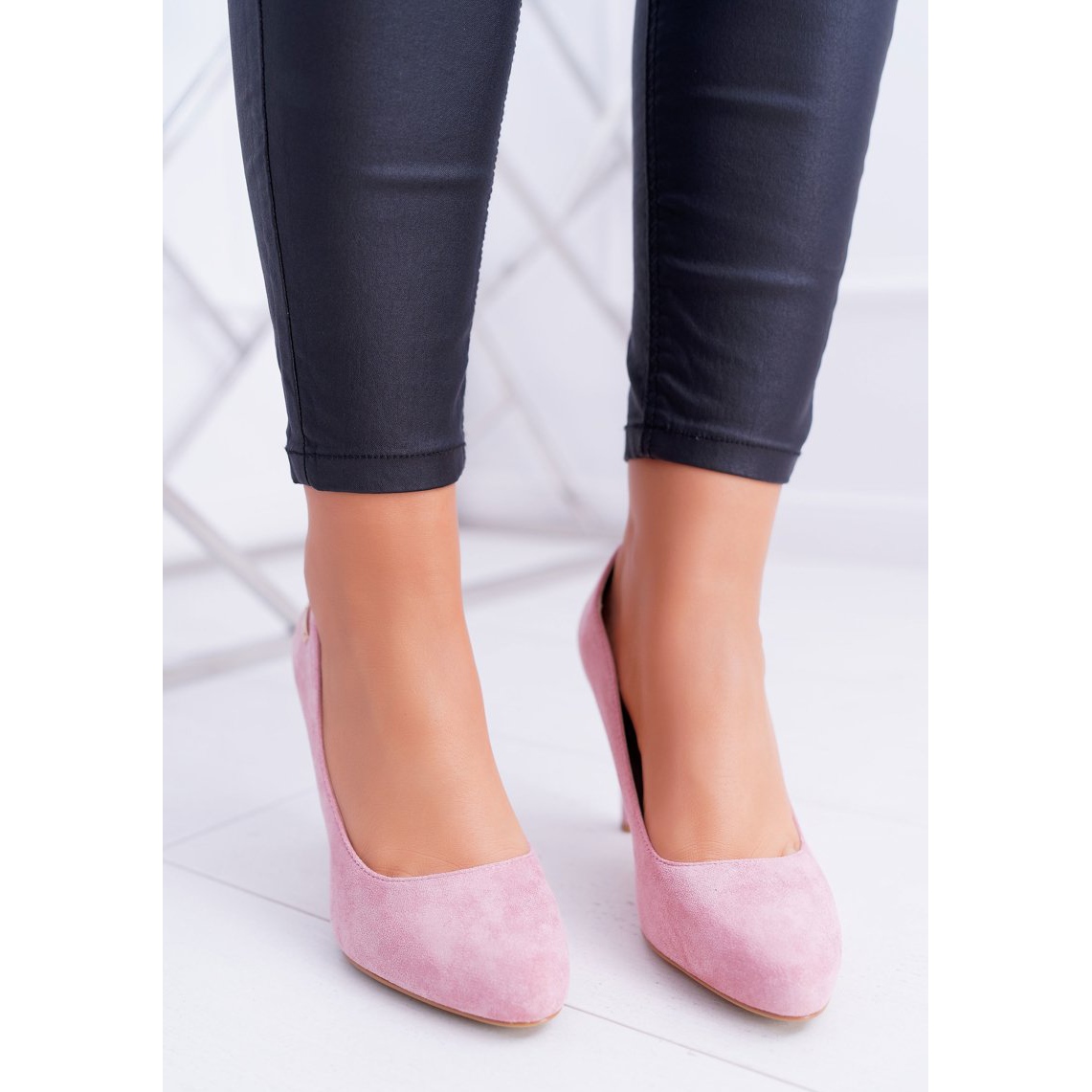 El diseño de los zapatos de salón se caracteriza por una delicada puntera almendrada, que alarga ópticamente las piernas y las adelgaza. Un poste estable de 9 cm de altura garantiza comodidad y estabilidad, lo que los convierte en una excelente opción para viajes más largos. La parte superior de ante ecológico de alta calidad garantiza un aspecto elegante y durabilidad.