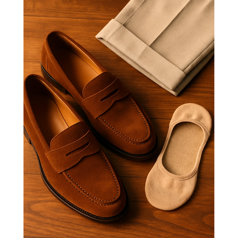 Tradición italiana y americana: No usar calcetines con mocasines = signo de libertad y elegancia casual. Popularizado en la Riviera italiana (décadas de 1950 y 1960), donde los aristócratas caminaban descalzos y con mocasines.