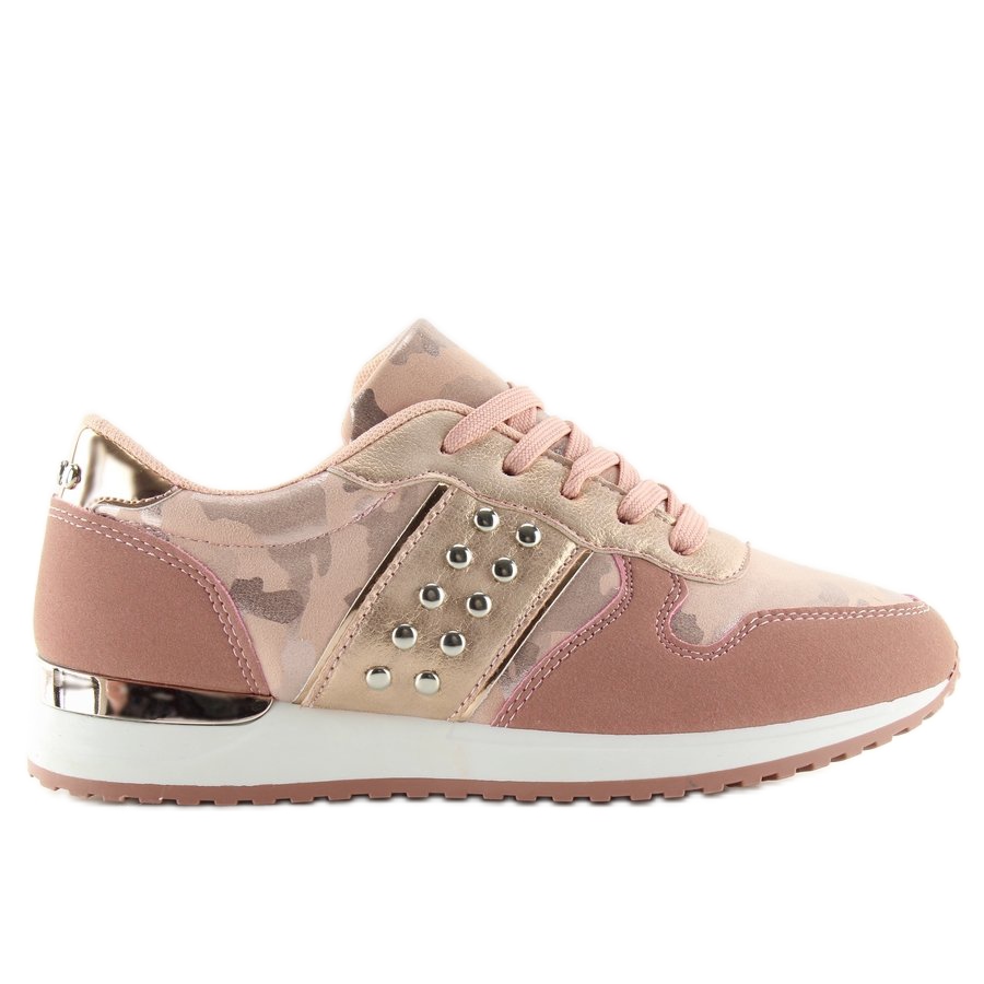 6234 Las zapatillas deportivas camuflaje rosa son una opción ideal para las mujeres que quieren combinar estilo con comodidad. Estas zapatillas únicas llaman la atención con detalles llamativos, como tachuelas e inserciones de espejo, que les dan un carácter único. Un sutil estampado de camuflaje combinado con un vivo color rosa hace que este modelo esté perfectamente en línea con las últimas tendencias de la moda.