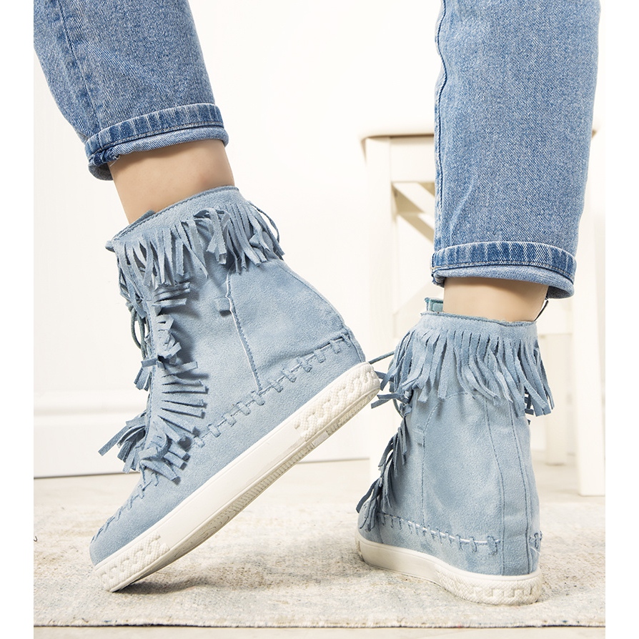Los flecos adicionales le dan al modelo LSI-801 un carácter único, y el color blanco de la suela combinado con la parte superior azul creará un dúo original que sin duda llamará la atención. La altura de 18,5 cm y la punta redonda garantizan comodidad y total libertad de movimientos, lo que los convierte en la elección perfecta para cualquier ocasión.