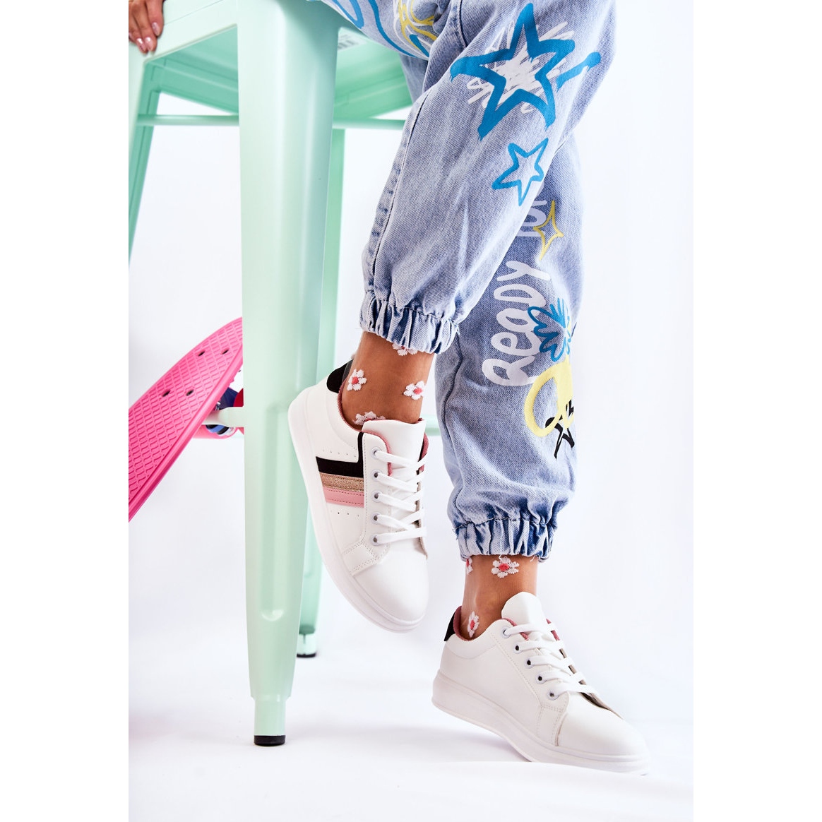 FK2 Deportivas de mujer atadas en blanco Renesme negro rosa dorado