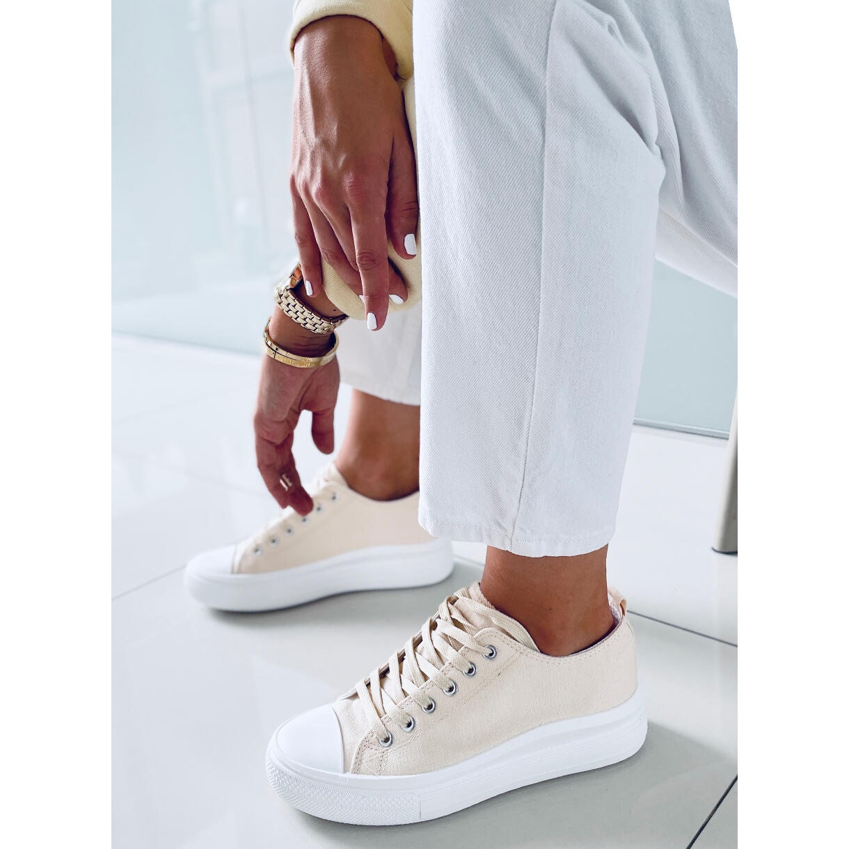 Las zapatillas de mujer Ebbe Beige son la elección perfecta para las mujeres que quieren combinar estilo con comodidad. Estas zapatillas con cordones en un elegante color beige llaman la atención por su diseño clásico, y la suela alta, de 4 cm, aporta originalidad y gusto.