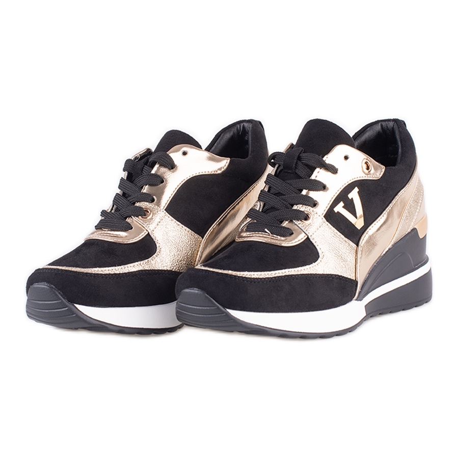 Detalles: Vinceza Deportivas de mujer Potocki negras y doradas con tacón de cuña negro dorado