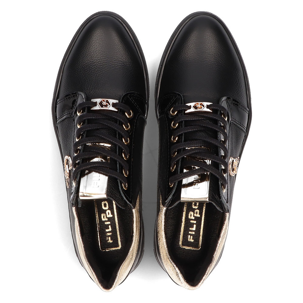 Aquí tienes las zapatillas de piel Filippo 128 en un elegante color negro, que combinan a la perfección estilo con comodidad. Estas zapatillas deportivas de mujer han sido diseñadas para el día a día, perfectas tanto para estilismos urbanos como para outfits casual.