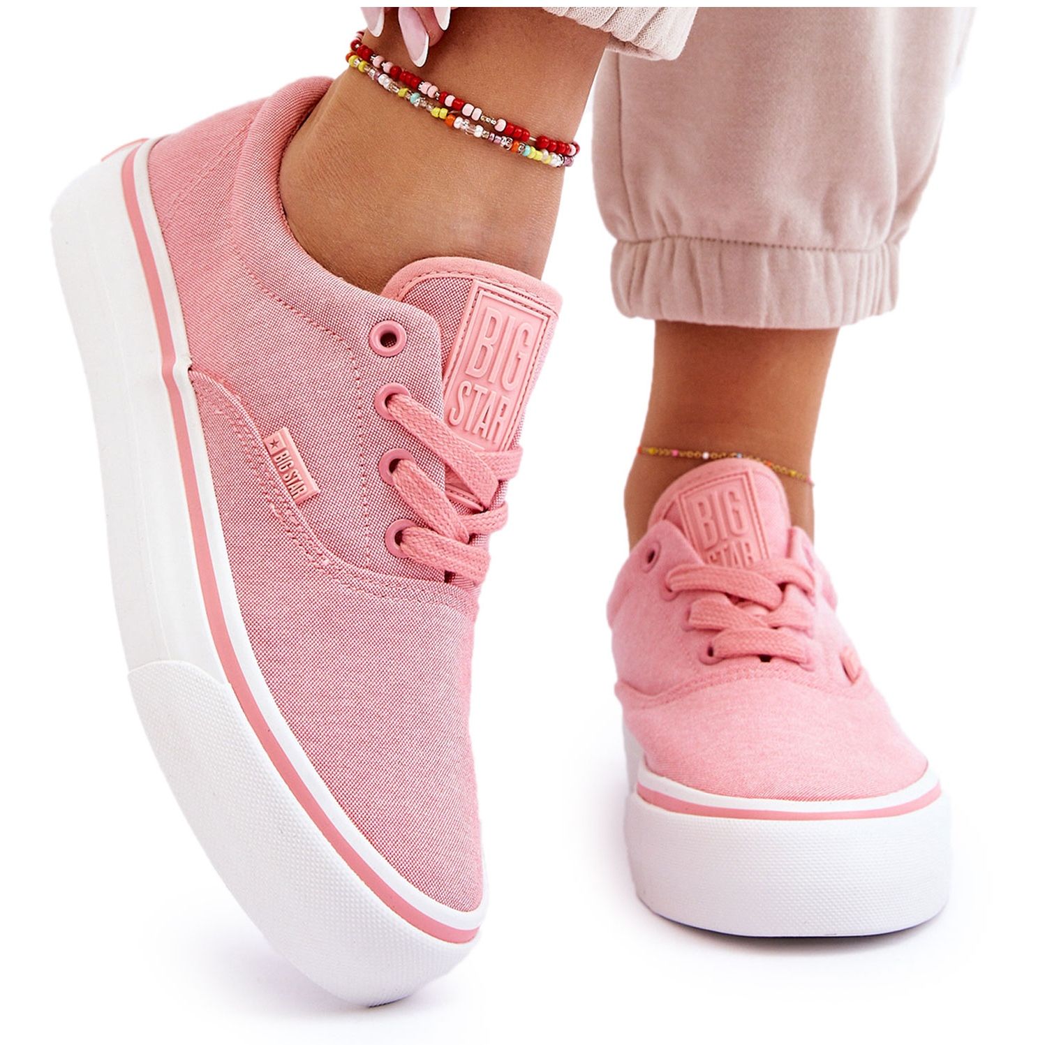 Aquí tienes unas zapatillas de plataforma baja del reconocido fabricante Big Star, modelo LL274147 en un precioso color rosa. Estas zapatillas de tela son la solución perfecta para los días de primavera y verano en los que la comodidad y el estilo son clave.