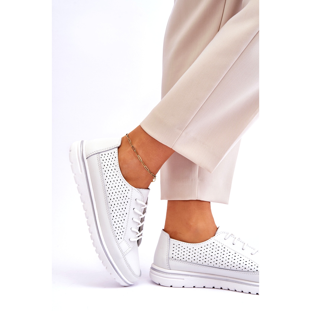 Las zapatillas blancas son un elemento atemporal del guardarropa femenino. El modelo Elami es un clásico con un toque moderno: cordones clásicos, puntera redondeada y suela de plataforma sutilmente elevada, que dan un toque de modernidad discreto pero notable. Los cordones permiten un ajuste preciso de los zapatos al pie y el bajo peso del modelo permite usarlos durante todo el día sin preocuparse por la fatiga de las piernas.