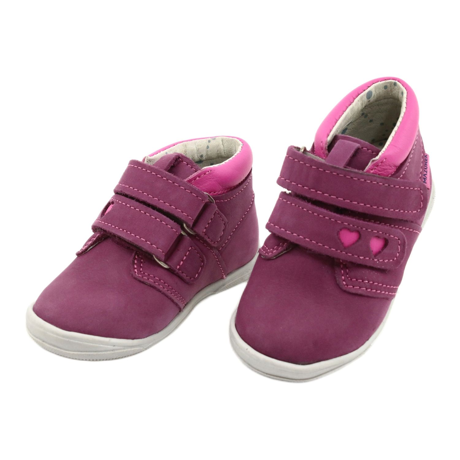Los zapatos para niños elegantes y funcionales de Mazurek, modelo 1355, diseñado para la comodidad y el desarrollo adecuado de los pies. Hecho completamente de cuero Nubuck natural en un intenso tono de fucsia, ideal en primavera y otoño: combinan la comodidad del uso diario con un diseño estético y femenino.