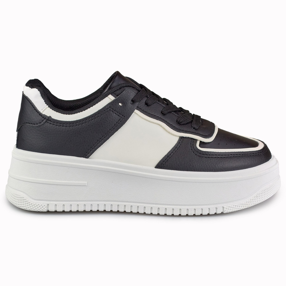 Zapatos deportivos en blanco y negro en la plataforma-cuero ecológico, plataforma 5 cm