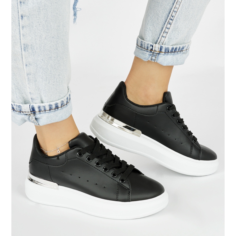 Las zapatillas negras con plataforma para mujer son la elección perfecta para las mujeres que valoran el estilo y la comodidad. Estos zapatos deportivos se caracterizan por un tacón suave y cerrado que garantiza estabilidad y comodidad de uso, lo que los hace perfectos para el uso diario.