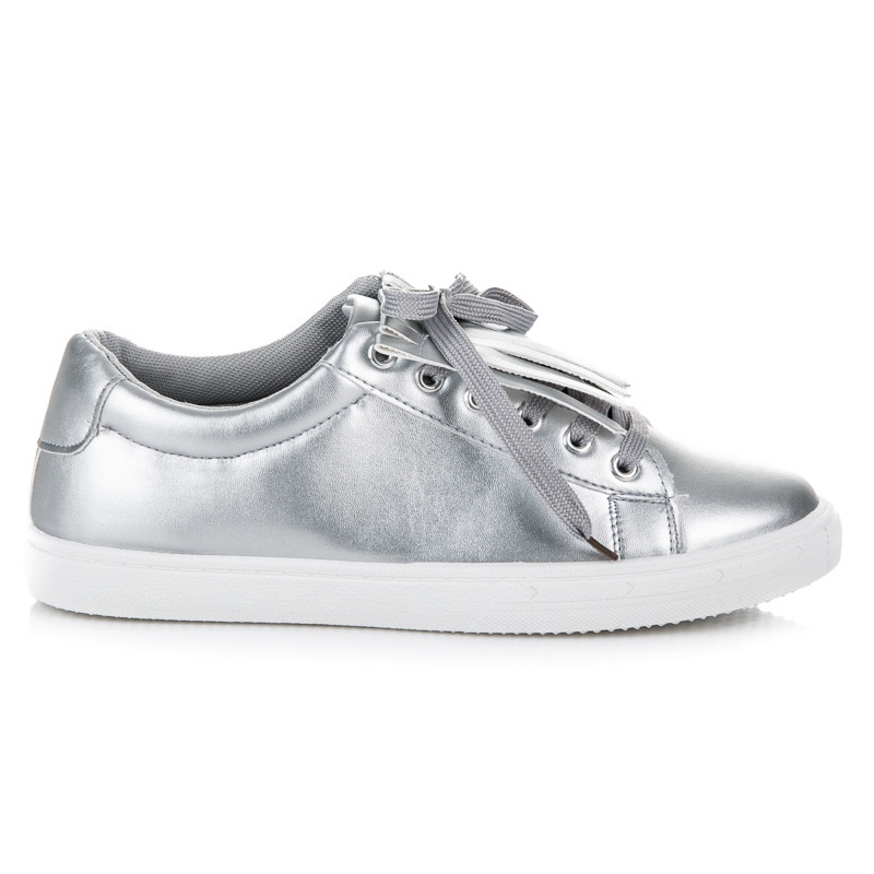 Las Zapatillas Plateadas con Flecos en color gris son la elección perfecta para las mujeres que quieren combinar comodidad con un look moderno. Estas zapatillas bajas, fabricadas con materiales de alta calidad, no solo brindan comodidad de uso, sino también un acento elegante en cualquier estilo cotidiano.