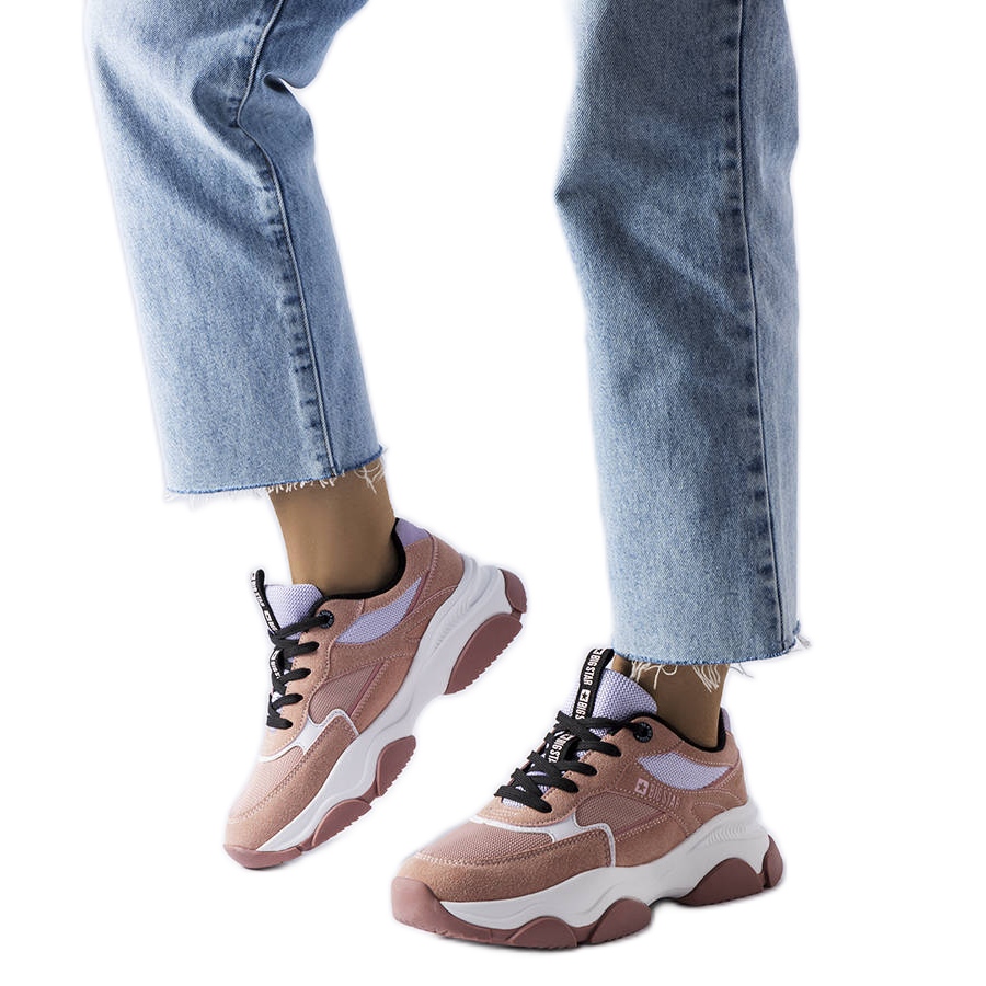 Pink Sneakers Big Star JJ274577 es una combinación de ligereza de verano y comodidad diaria. Hechos de cuero ecológico agradable al tacto, con una suela de plástico blanco, son excelentes como un elemento universal de las vacaciones y las estilizaciones urbanas.