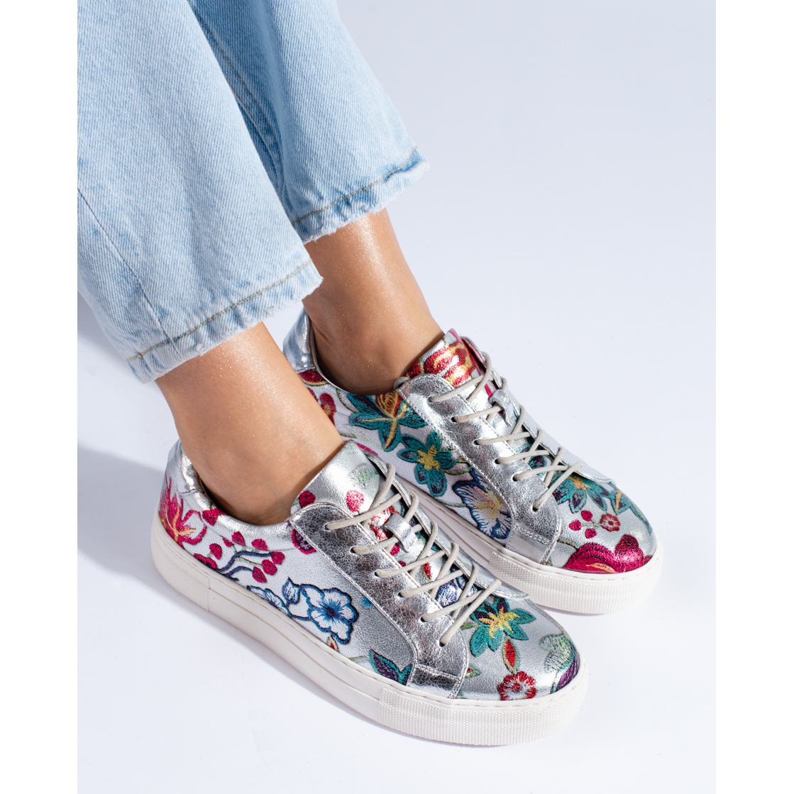 SHELOVET Deportivas Shelovet flores plateadas plata