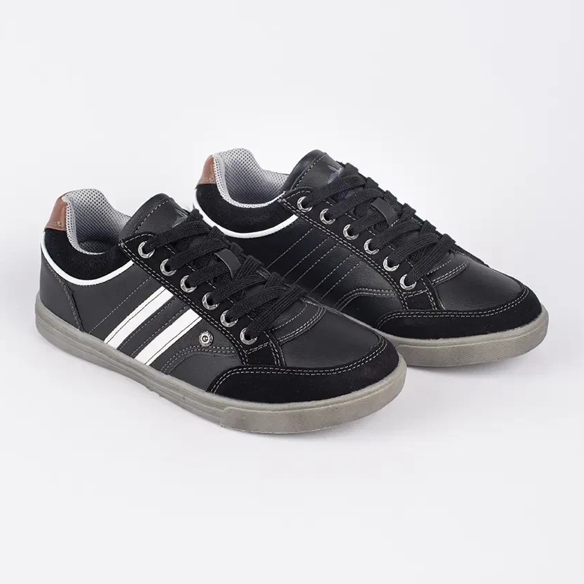La suela con una banda de rodadura hecha de plástico proporciona adhesión, y el color negro clásico con acentos blancos hace que los zapatos sean universales y fáciles de combinar con otros artículos de vestuario.