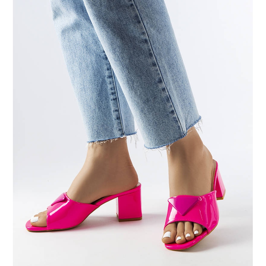 Elige comodidad y estilo para el verano con las mules de tacón Branch de charol rosa: ¡el compañero perfecto para las aventuras de verano!