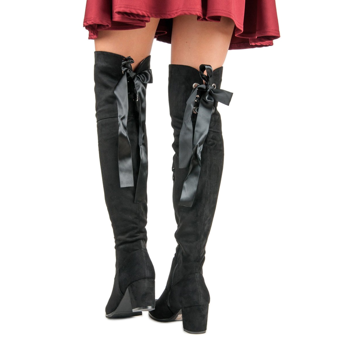 Las botas por encima de la rodilla brindan protección contra el frío, desde la punta de los dedos hasta la mayor parte del muslo, lo que las hace perfectas para los días más fríos. Su diseño minimalista, enriquecido con elegantes cintas atadas en un lazo en la espalda, los hace combinar perfectamente con cualquier conjunto, desde vestidos elegantes hasta jeans informales.