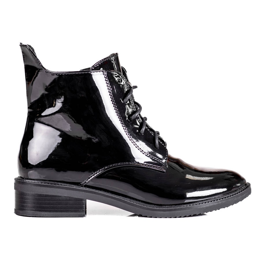 SHELOVET Elegantes botas Shelovet de mujer con cordones fabricadas en piel ecológica barnizada negro