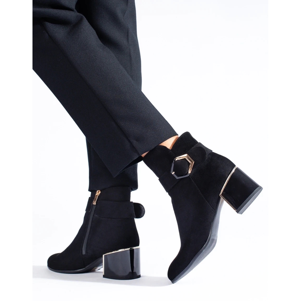 Detalles: Elegantes botines de mujer de tacón bajo fabricados en ante ecológico. negro
