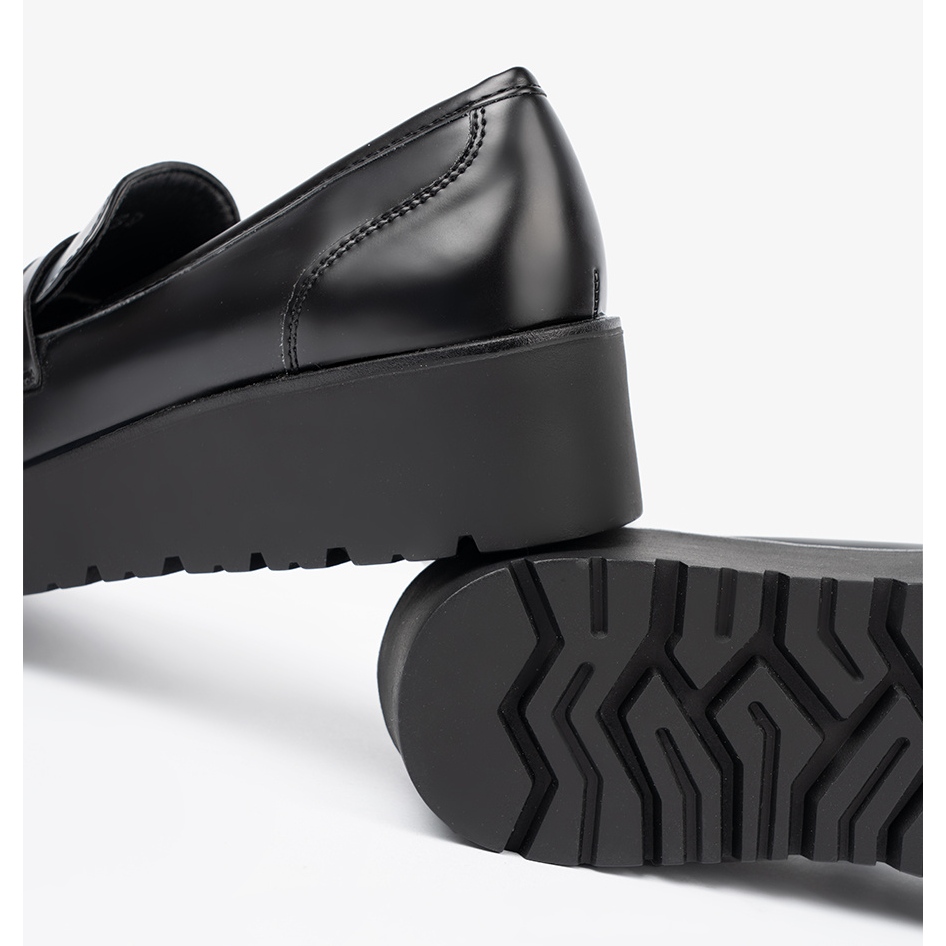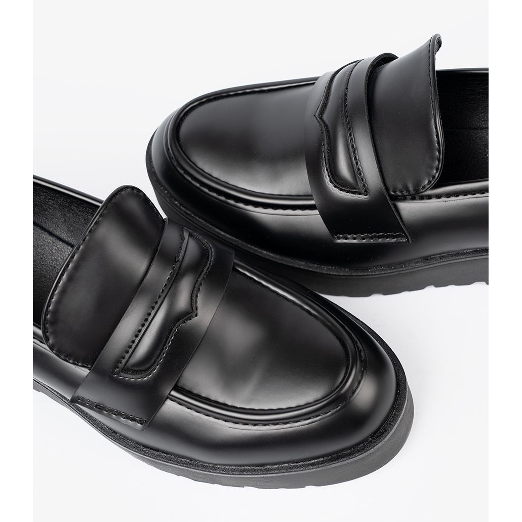 Detalles: Shelvt Elegantes mocasines negros en una suela gruesa