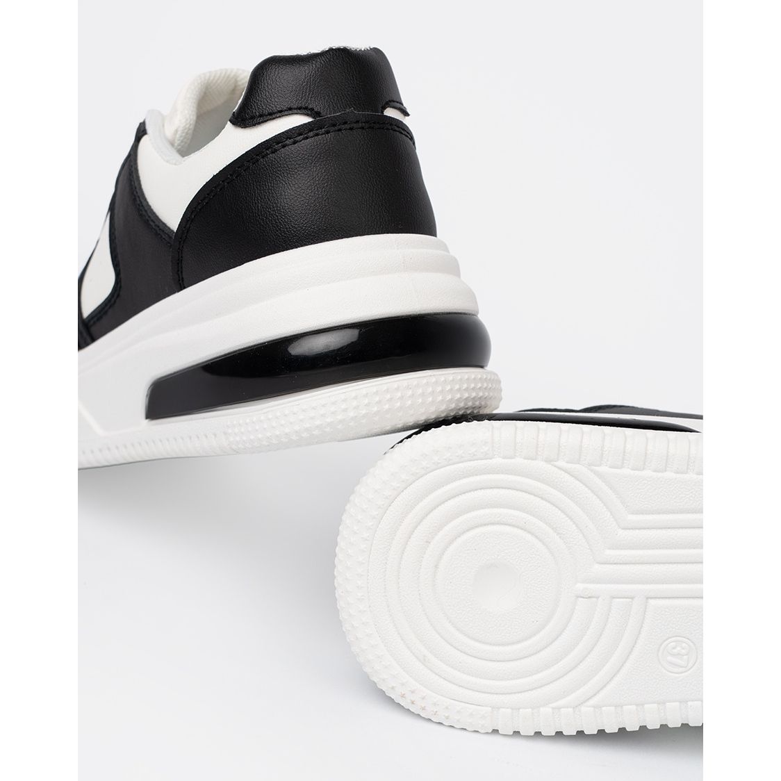 Detalles: Shelvt Elegantes zapatillas en blanco y negro con una suela gruesa
