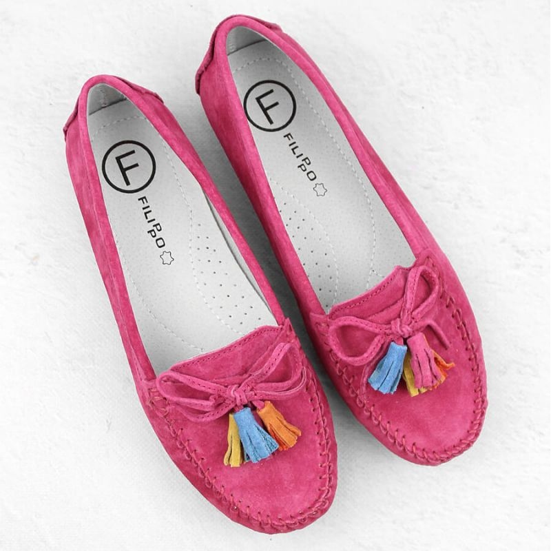 Filippo Filippo W PAW506B Mocasines de piel serraje con flecos fucsia rosado