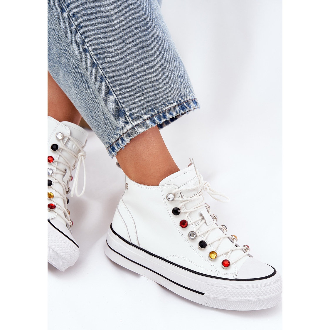 Las zapatillas de cuero GOE RR2N4102 en blanco es una propuesta para mujeres modernas que valoran el estilo y la comodidad. Hecho de cuero natural de alta calidad, estas zapatillas de deporte combinan perfectamente un aspecto de moda con practicidad. Gracias a la instalación en una plataforma ligera, ofrecen no solo un diseño único, sino también estabilidad y comodidad del uso.