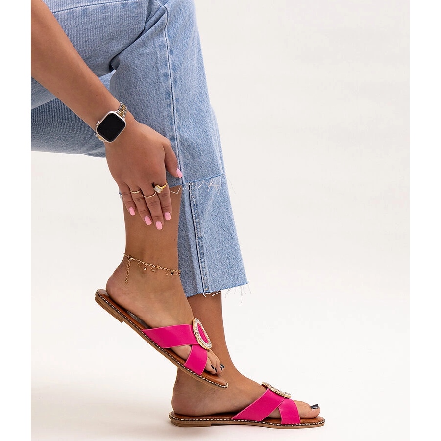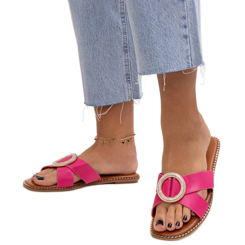 Las zapatillas decoradas con una hebilla en los diamantes de imitación de Salimba en rosa son la opción perfecta para los días de verano que combinan la comodidad con el estilo de moda. Su diseño de deslizamiento permite una colocación rápida y conveniente, lo que los convierte en excelentes compañeros durante las vacaciones o la relajación en la playa. La nariz redonda le da a las aletas un aspecto moderno, lo que ciertamente atraerá los ojos.