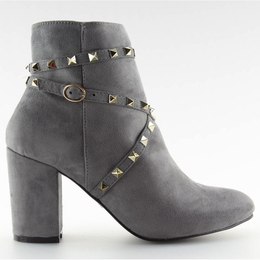 Botas de mujer con tacón ancho y estable de 9 cm de altura. Están hechas de ante ecológico, aislado con un pelaje delicado. Alrededor del gatito tienen rayas decorativas con tachuelas doradas que les dan carácter. En el interior, un control deslizante para ponerse fácilmente. Los zapatos son cómodos y se ven muy bien en el pie.