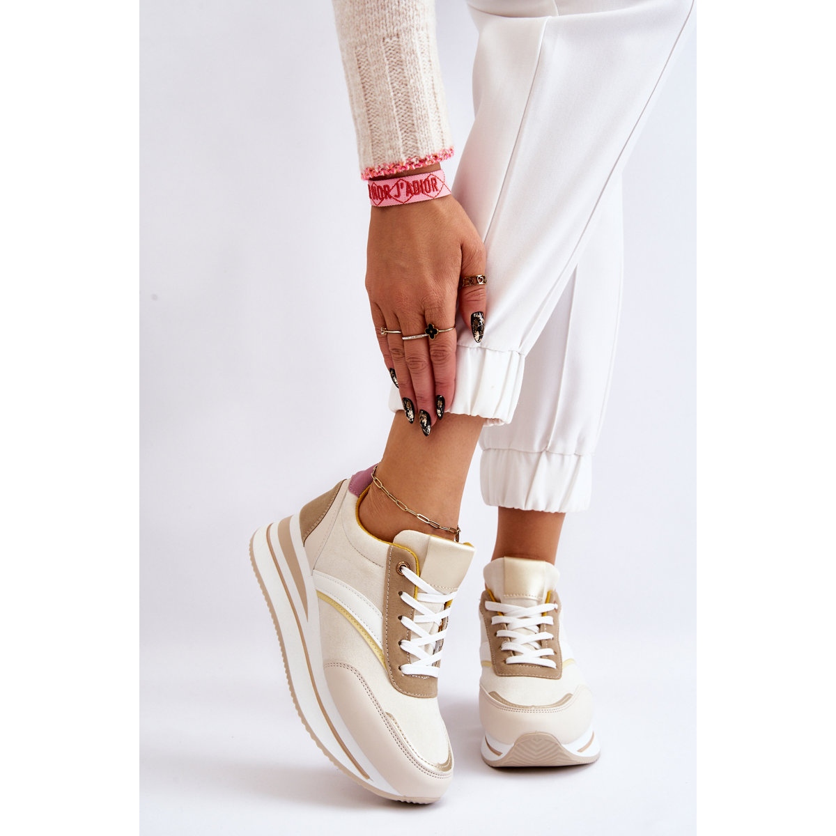 El inserto de material suave garantiza comodidad incluso cuando se usan durante todo el día y la falta de aislamiento los hace perfectos para el otoño y el invierno. Los colores beige y blanco combinan muy bien con muchos outfits, por lo que se convertirán en un elemento inseparable de tu armario.