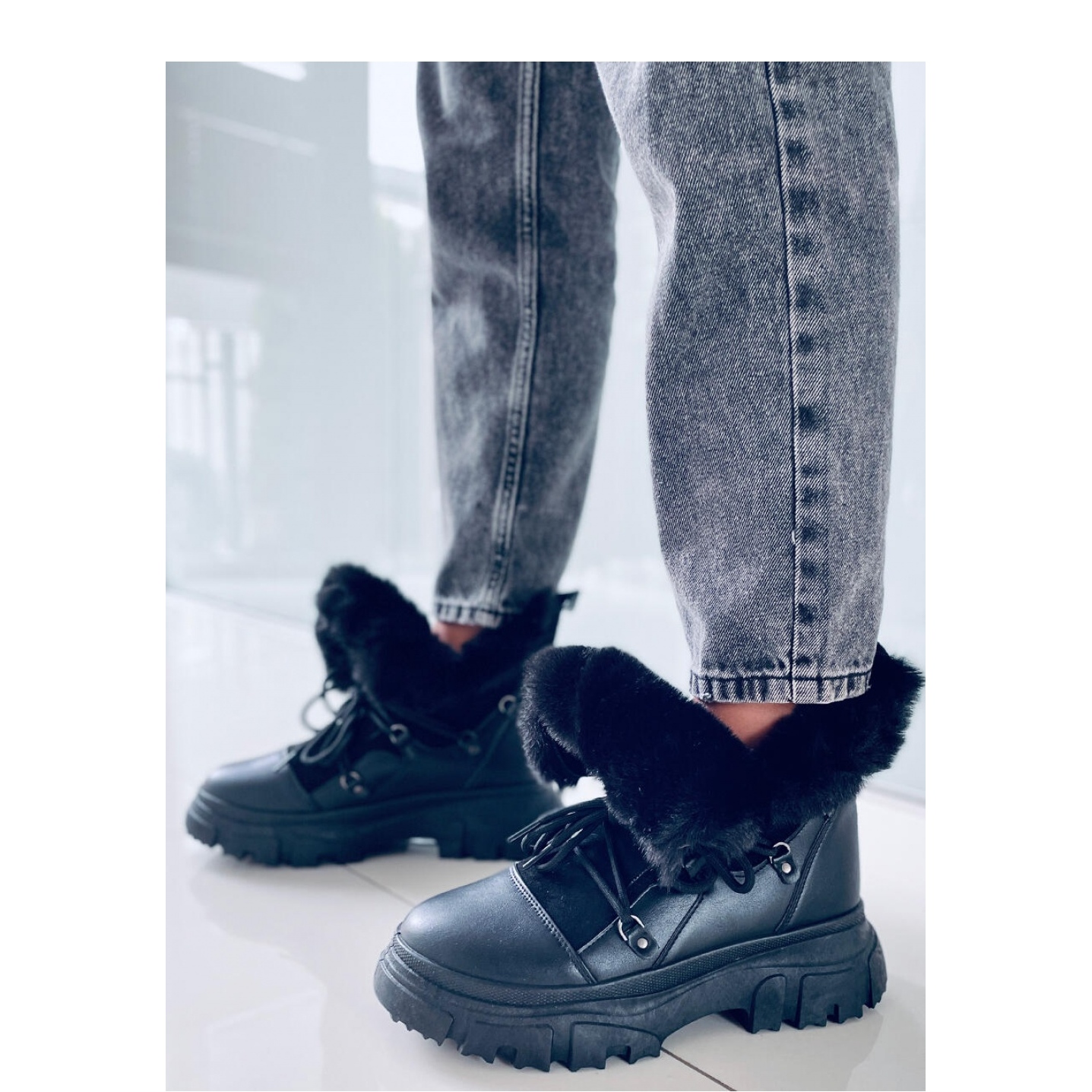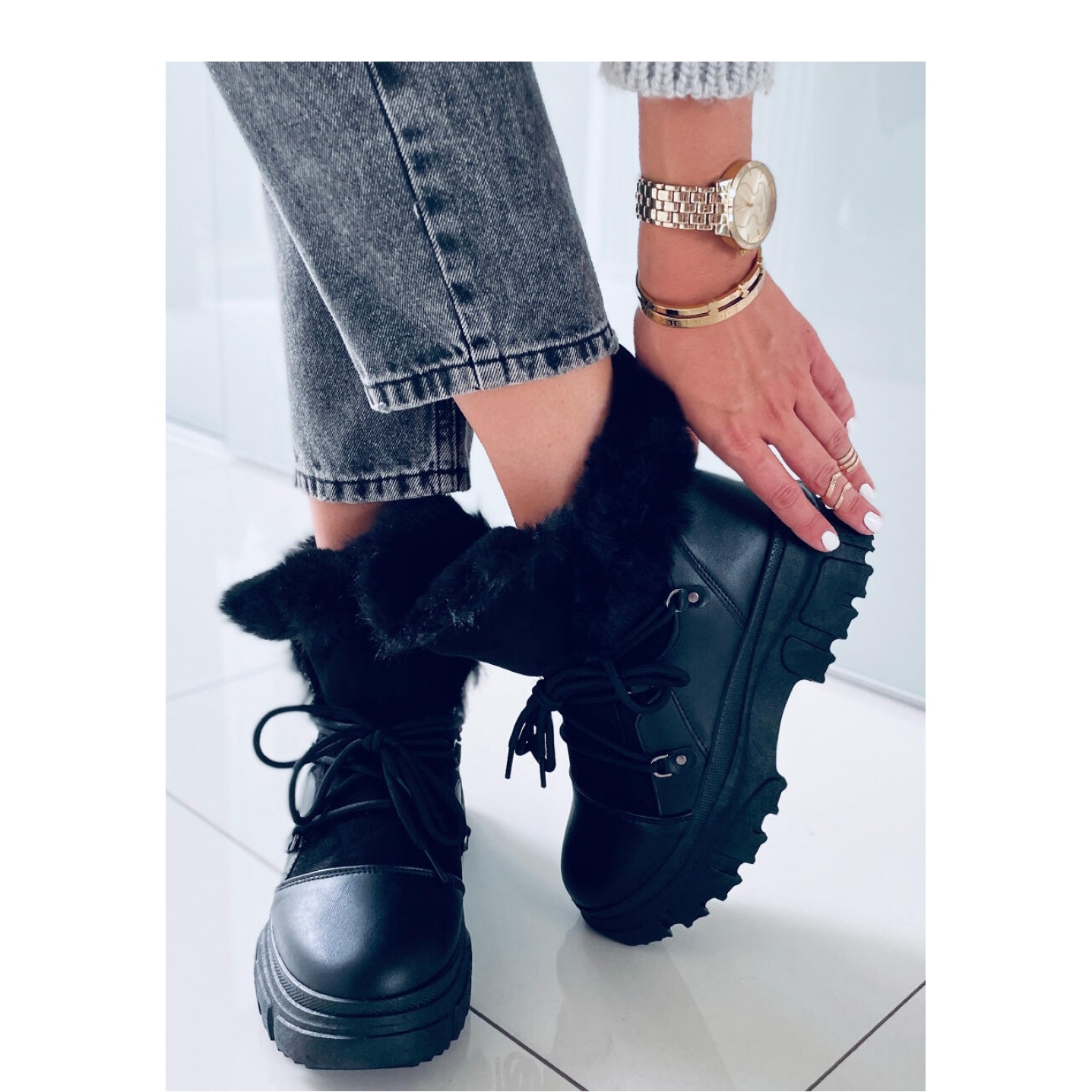 Botas de nieve de mujer con pelo. El modelo tiene un diseño deportivo con suela alta, que aísla perfectamente del suelo y es perfecto para paseos invernales, aportando tracción y comodidad. ¡Asegúrate de comprar estas botas forradas de piel y no le tendrás miedo al invierno! ¿Material exterior? Ante ecológico + piel ecológica.
