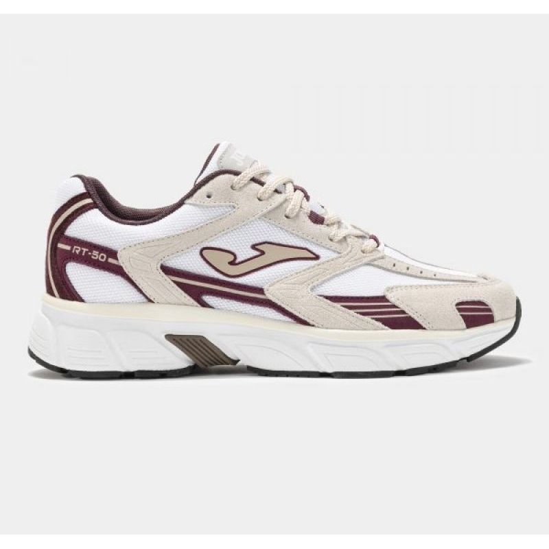 Joma RT50 Men 2506 Sports Shoes en blanco y beige es una gran propuesta para los hombres que valoran la comodidad, el estilo y la funcionalidad. El conocido fabricante Joma creó un modelo que combina el diseño moderno con la usabilidad cotidiana, perfectamente ajustada a las tendencias de un estilo elegante e informal.