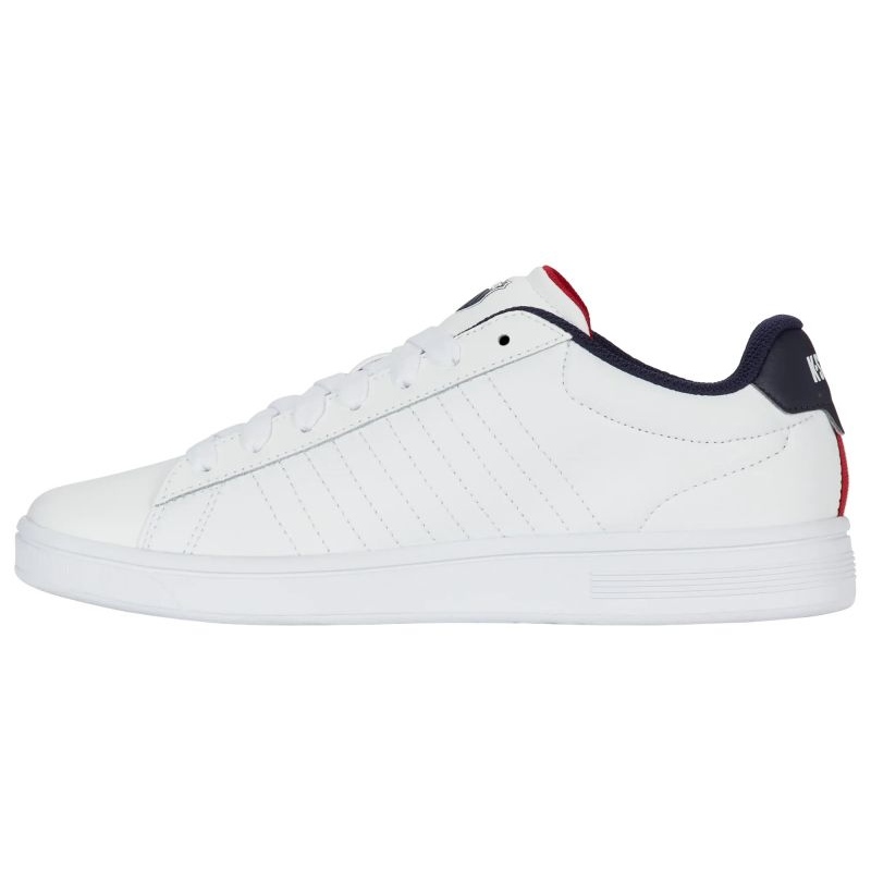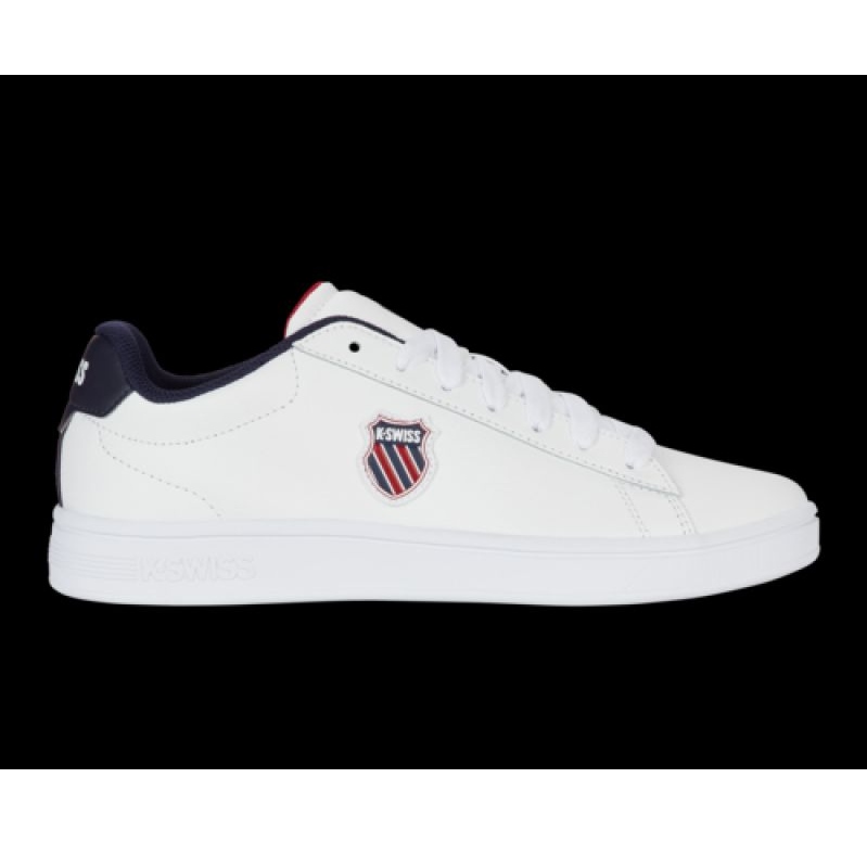 - Zapatillas de deporte para hombres K-Swiss Court Shield II White/Peaceat/Samba Red-M (Código de modelo: 04412-983-M) es la combinación perfecta de diseño moderno, comodidad y durabilidad.