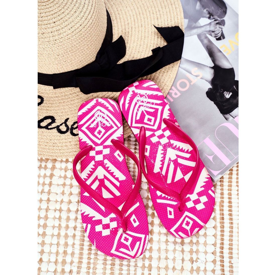 Flip-flops de goma ligero Lu Boo es imprescindible para el verano, perfecto para la playa, piscina y estilizaciones diarias, gratuitas. El rosa intenso atrae inmediatamente la atención, y el inserto suave, de goma y el perfil bajo (plataforma de 1,5 cm) aseguran la comodidad todo el día. Protegen los pies contra la arena caliente y son fáciles de mantener limpios.