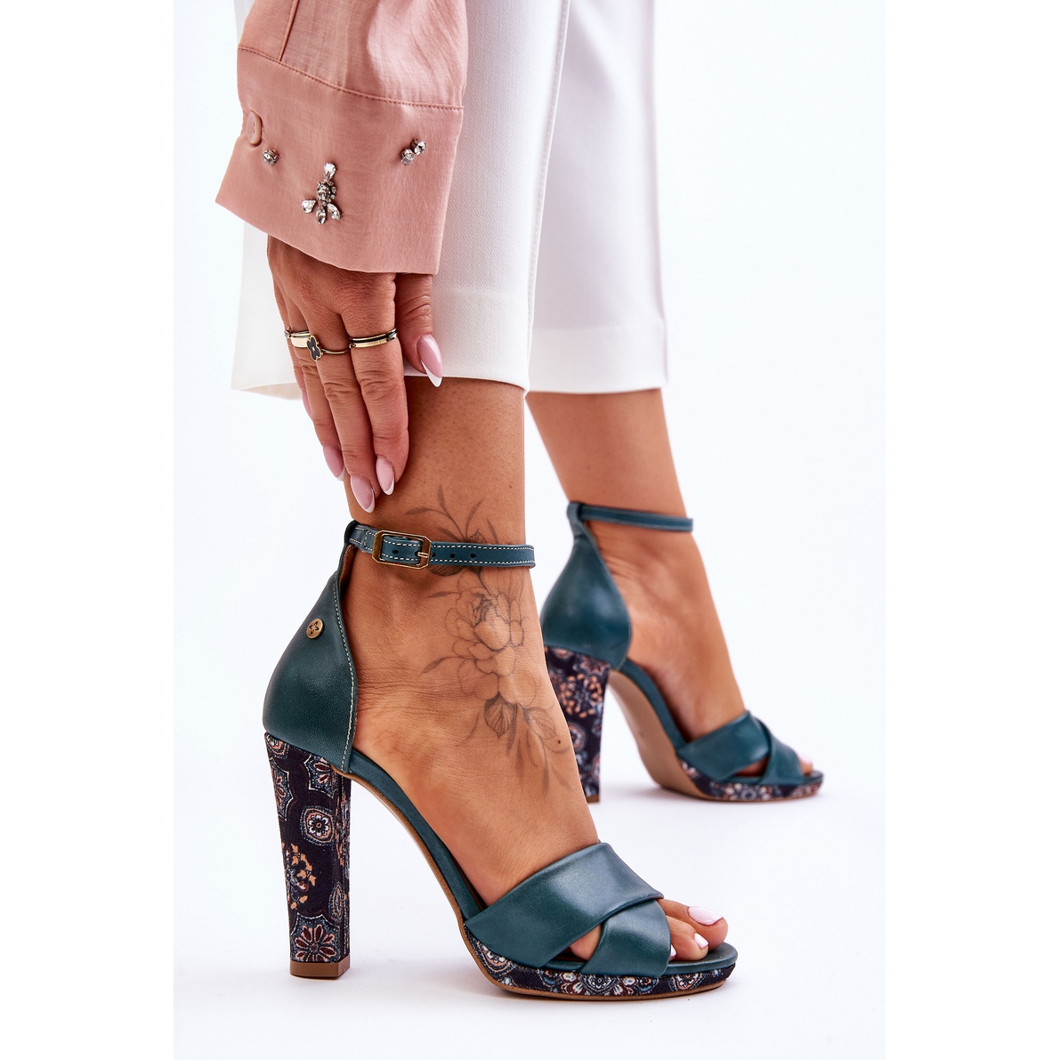 Detalles: Maciejka 06081-09 Sandalias De Tacón Alto De Cuero Verde Oscuro