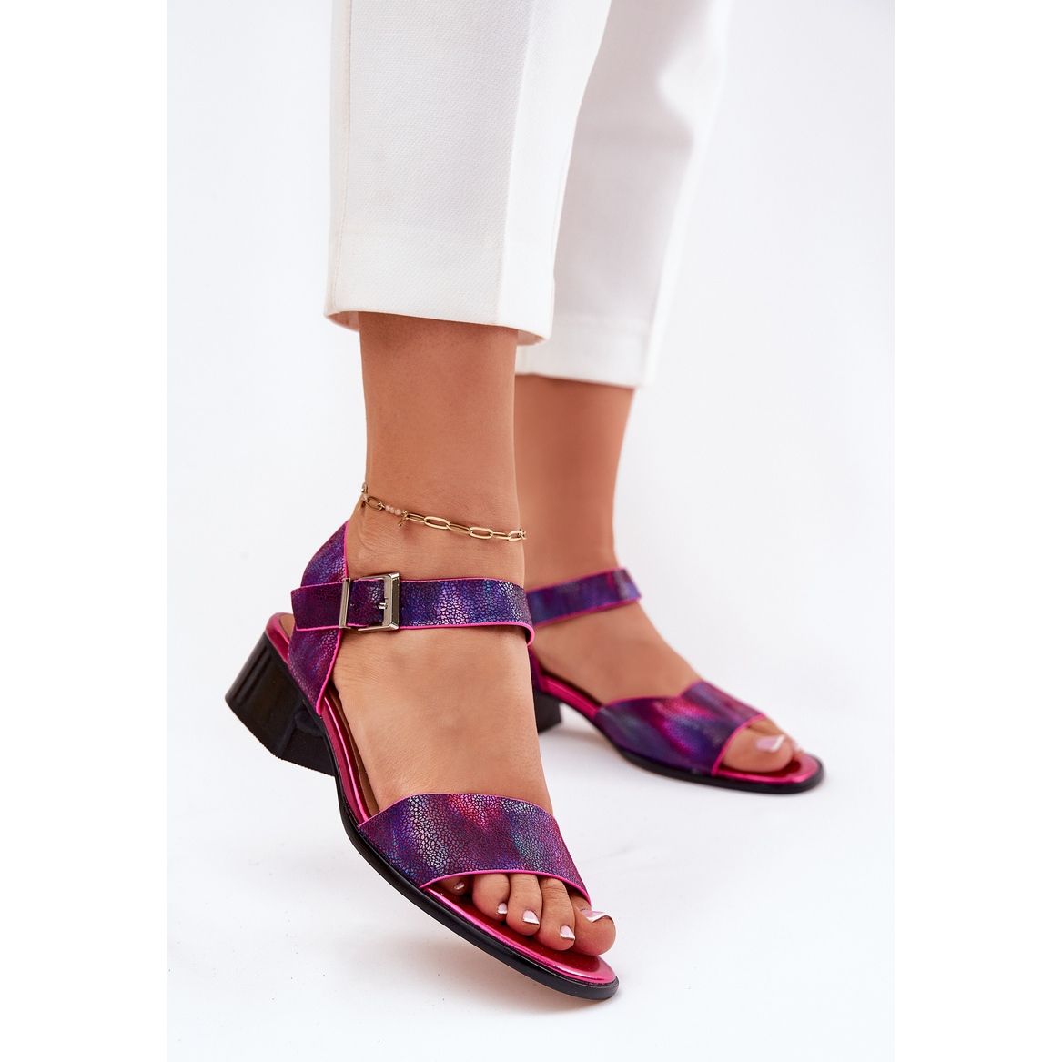 Hecho de cuero natural de alta calidad, las sandalias garantizan no solo una apariencia atractiva, sino también durabilidad y comodidad del uso. El talón en forma de un bloque de 4 cm de altura proporciona un soporte estable, por lo que puede disfrutar de su día sin temor a la fatiga del pie. El cinturón ajustable con una hebilla le permite adaptar perfectamente el calzado a las necesidades individuales, lo que se traduce en aún más conveniencia.
