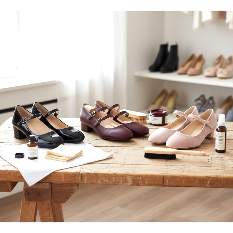 La mayoría de las merceditas están hechas de cuero natural, cuero ecológico o charol. Cada uno de ellos requiere un enfoque de atención ligeramente diferente.