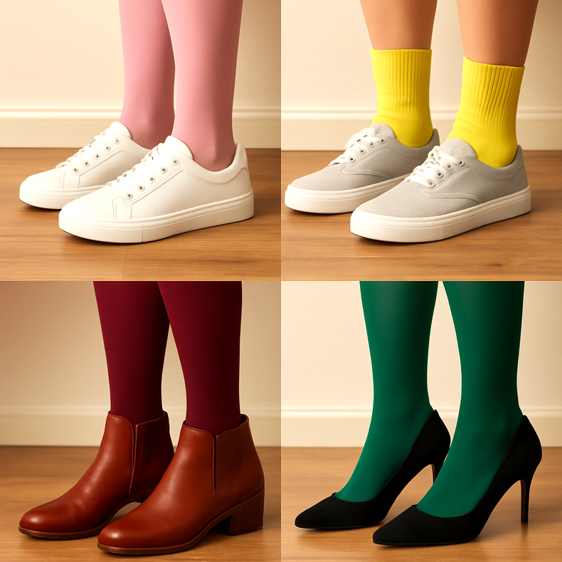 Hace solo unos años, los accesorios coloridos en las piernas eran el dominio de las fashionistas más valientes. Hoy se han convertido en la corriente principal, desde oficinas corporativas hasta las casas de moda más importantes. Pero la capacidad de combinarlos con calzado sigue siendo un arte que requiere gusto y conocimiento sobre los colores.
