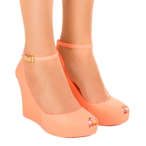 Los zapatos Meliski están fabricados con caucho de alta calidad, lo que garantiza un ajuste perfecto al pie y comodidad de uso. La puntera abierta de las piernas permite que las sandalias ventilen perfectamente los pies y el cierre en el tobillo garantiza la estabilidad. Gracias a una cuña de 10 cm de altura, estos zapatos no sólo alargan ópticamente las piernas, sino que también aportan confianza en uno mismo.