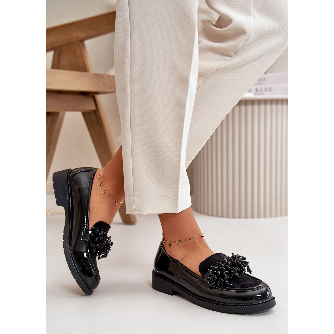 Mocasines barnizados de mujeres S. Barski Hy369a en negro es la elección perfecta para las mujeres que desean combinar elegancia con la comodidad cotidiana. Hecho de cuero ecológico barnizado de alta calidad, estos mocasines atraen efectivamente los ojos con su brillo y diseño clásico. La nariz redonda, junto con un talón plano con una altura de 3 cm, garantiza la comodidad de usar todo el día, lo que los convierte en una gran solución tanto para la oficina como para las reuniones sociales.