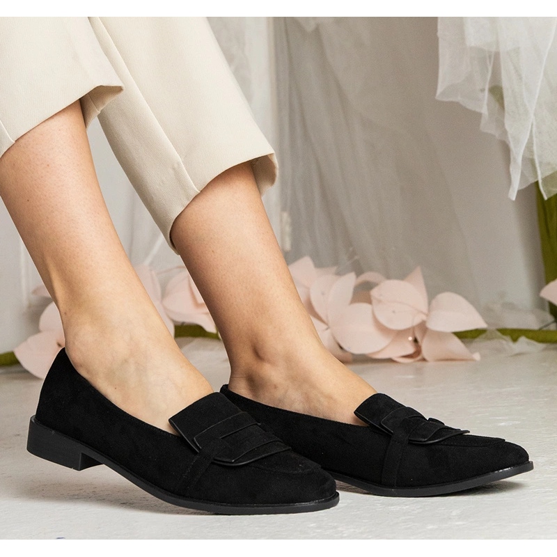 Detalles: Mocasines clásicos de mujeres negras hechas de ekozamsz negro