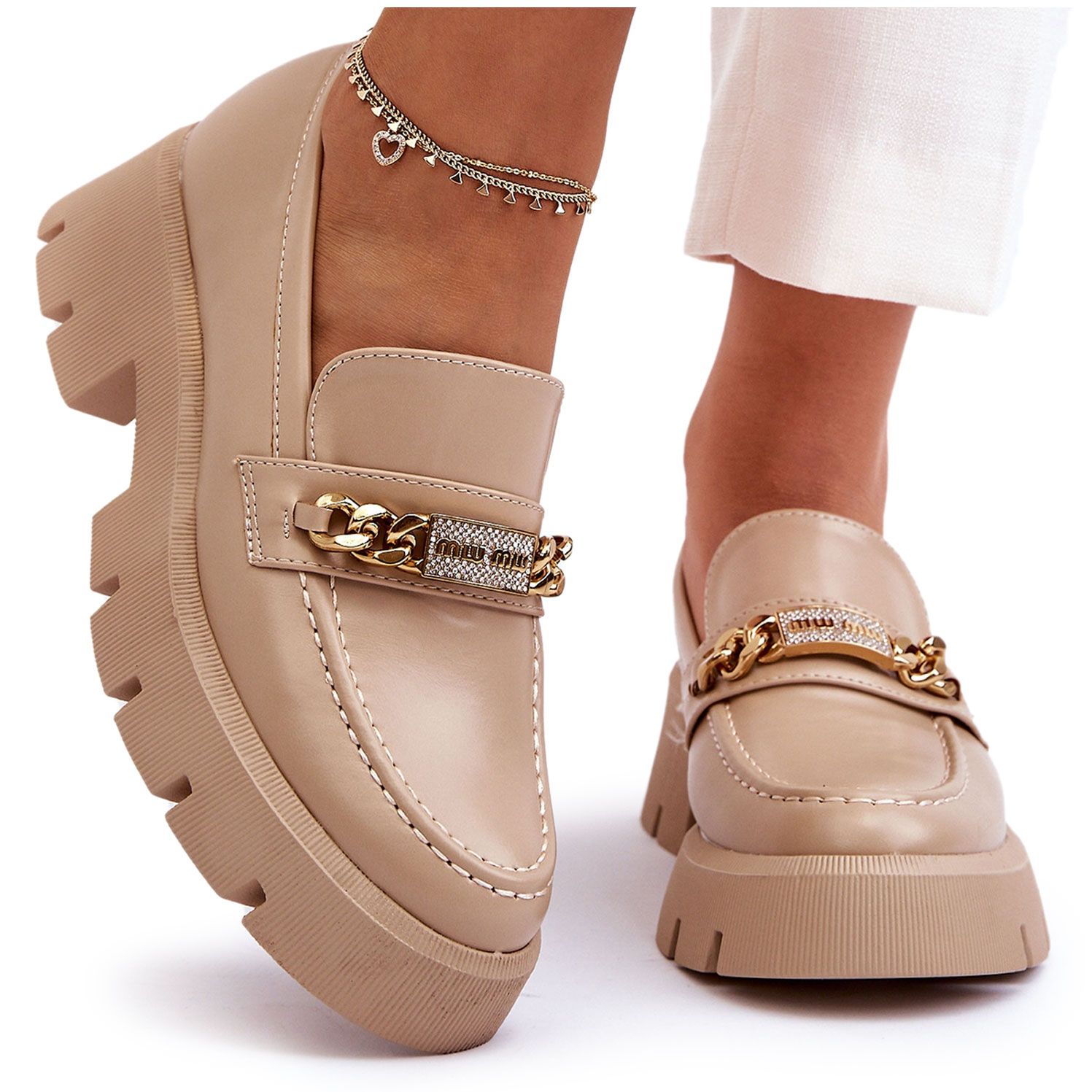PS1 PS1 Mocasines Clásicos Sobre Una Plataforma Gruesa Beige ¡Atrápame!