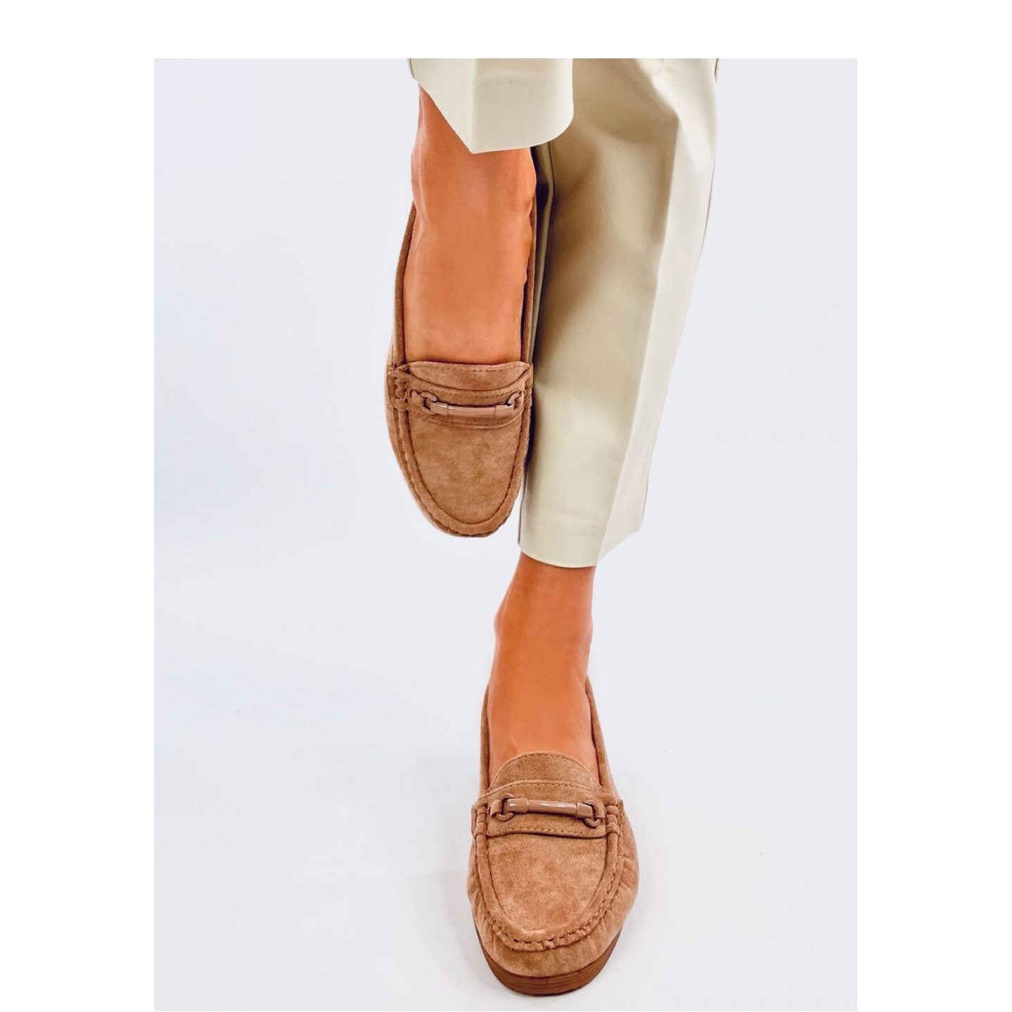 Los mocasines están hechos de gamuza ecológica, lo que los hace no solo amigables para el medio ambiente, sino también extremadamente elegantes. Una delicada hebilla en la parte superior agrega sutileza y hace que estos zapatos se ajusten a muchos estilos diferentes, desde casuales hasta elegantes.