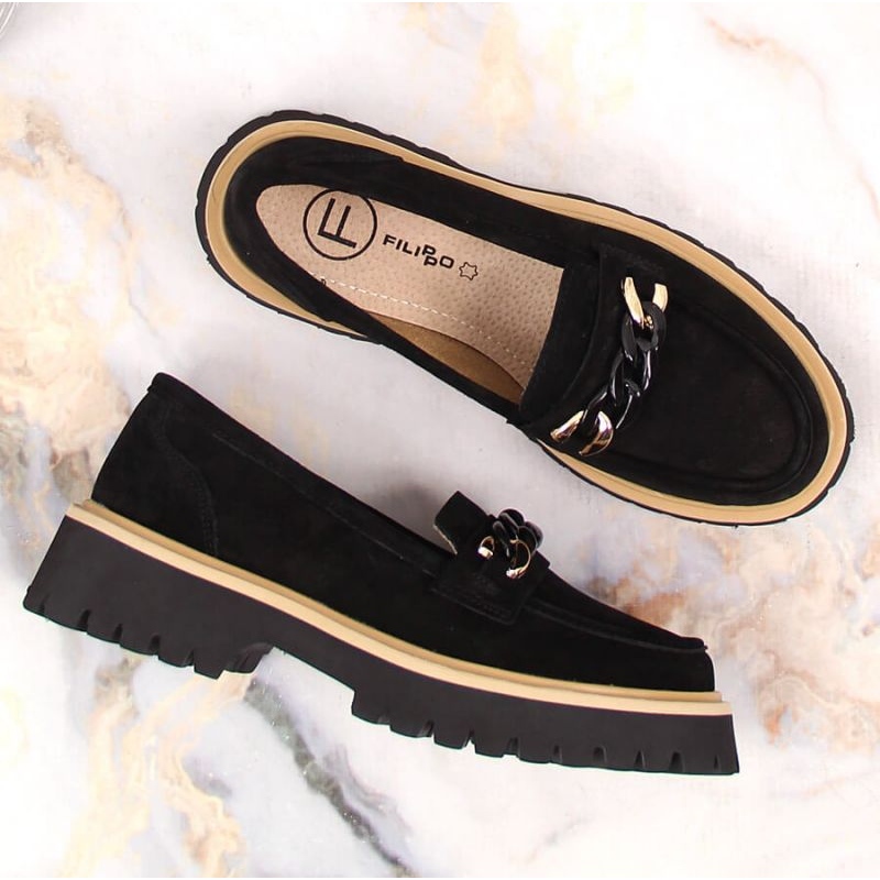 Detalles: Mocasines de ante con tacón y cadena Filippo W PAW404 negro